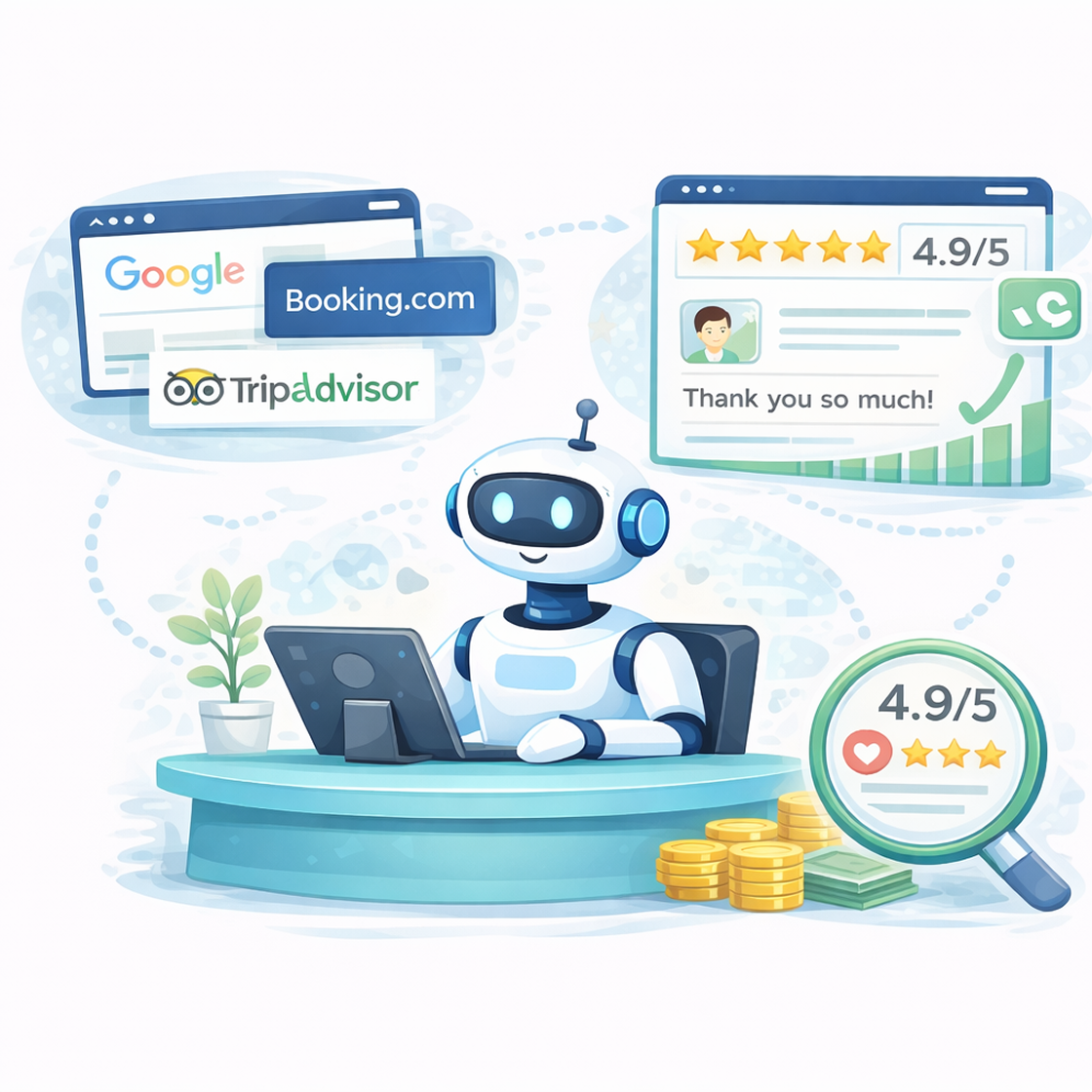 Rapid, consistent review responses and active reputation management increase guest trust scores and direct booking conversion rates.